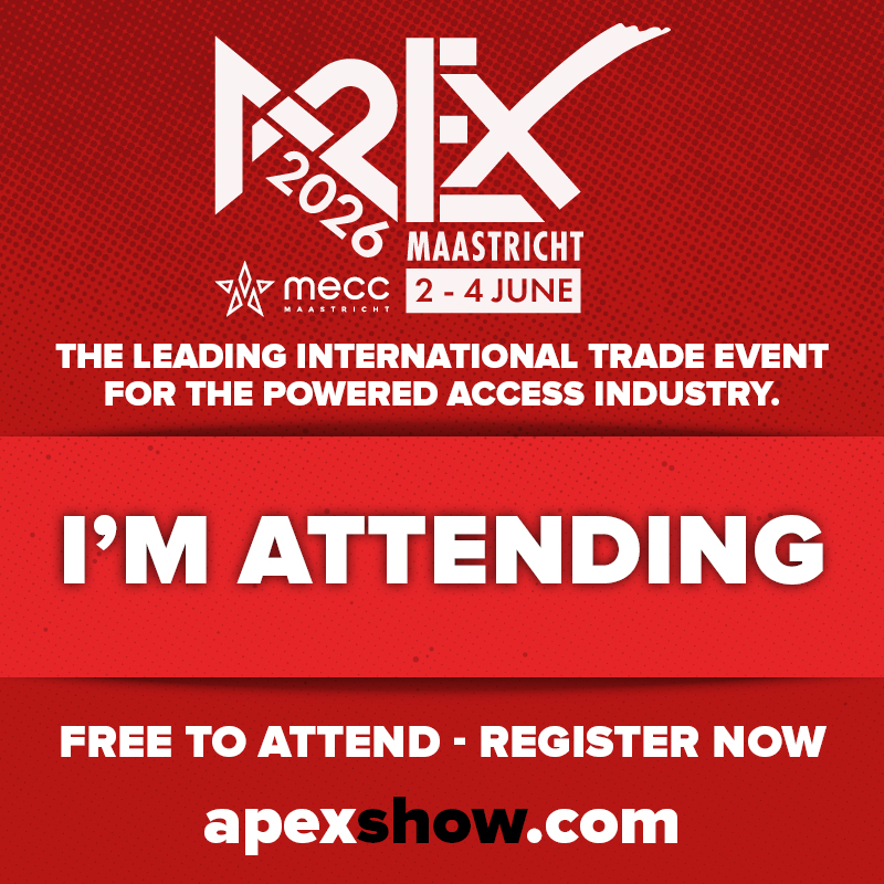 Join us for APEX 2026, the leading international trade event for the powered access industry, taking place from 2 – 4 June at the MECC in Maastricht, the Netherlands.